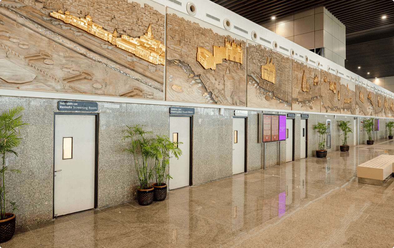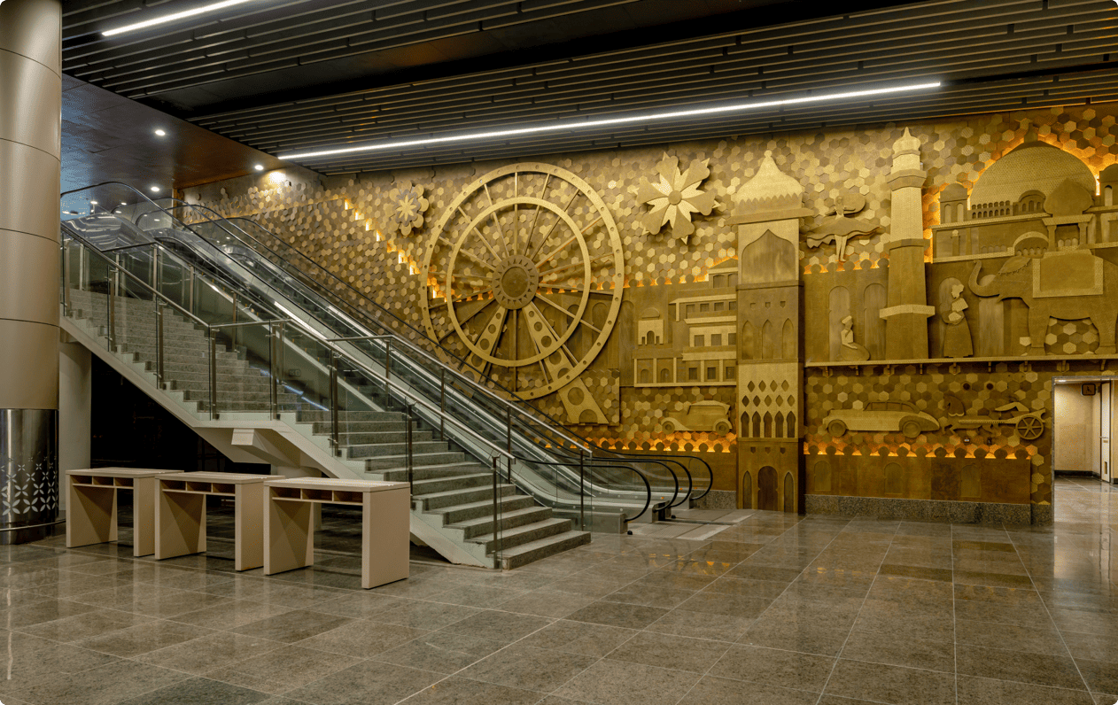 At Terminal 3 of CCSIA, Lucknow, art transcends decor. It is an experience that celebrates Uttar Pradesh's rich ‘sabhyata’ and heritage, turning every traveller’s journey into a cultural discovery. The art installations across the Terminal are meticulously curated to beat the conventional airport experience and are an integral part of the passenger journey.